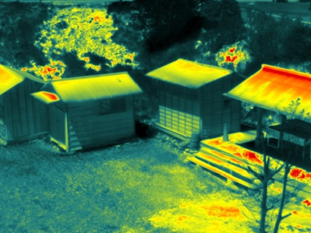赤外線カメラを搭載したドローンは、夜間や樹林帯でも動物の熱源をとらえることができます。